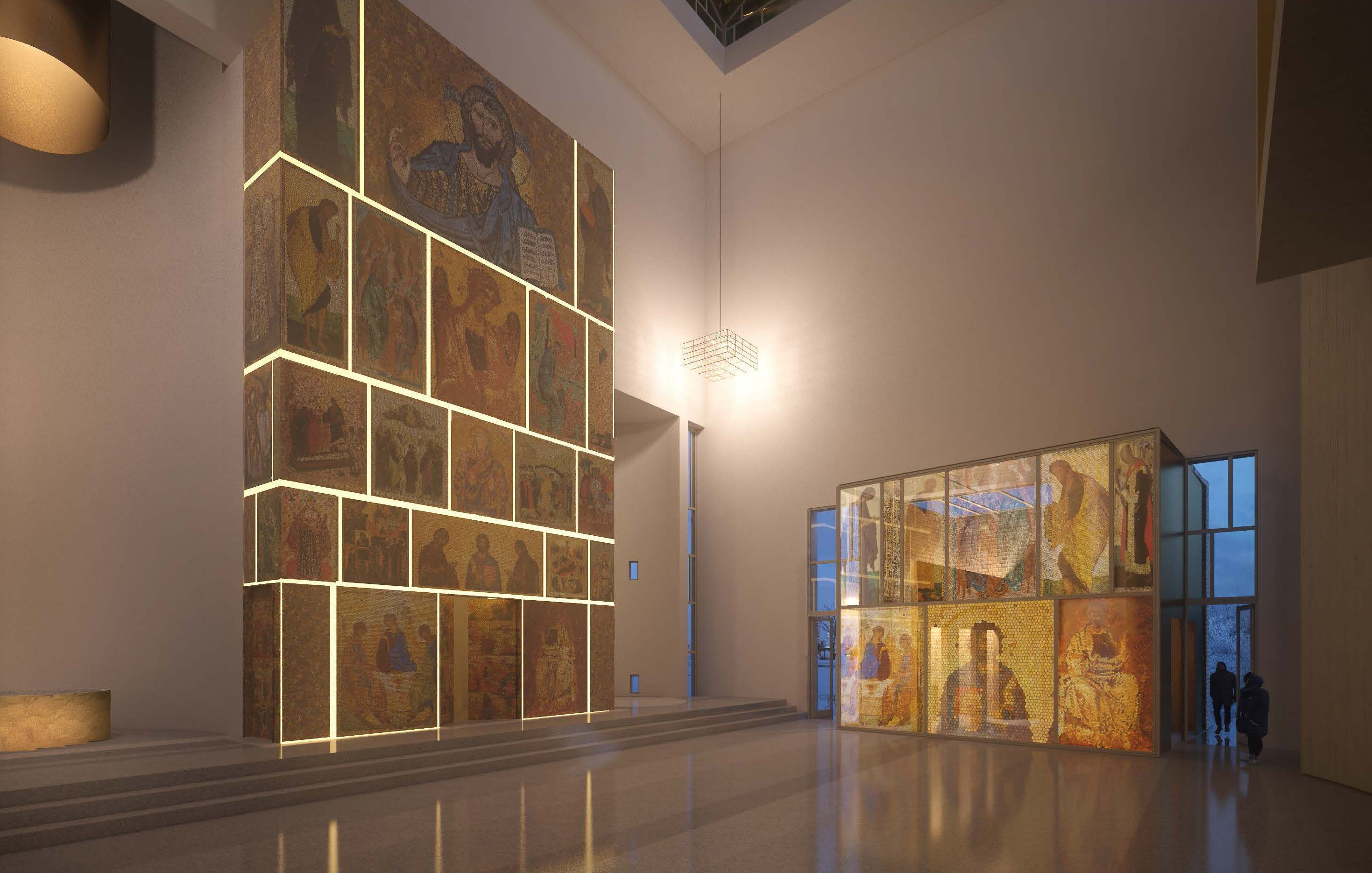 La chiesa si rifà all’archetipo della chiesa bizantina a pianta quadrata, da cui derivano la maggior parte delle chiese ortodosse, e propone un esperienza sacra moderna con gli elementi tradizionali che la compongono. Questi vengono scomposti nelle loro forme elementari e giustapposti allo spazio sacro principale di dimensioni cubiche di lato 18m.